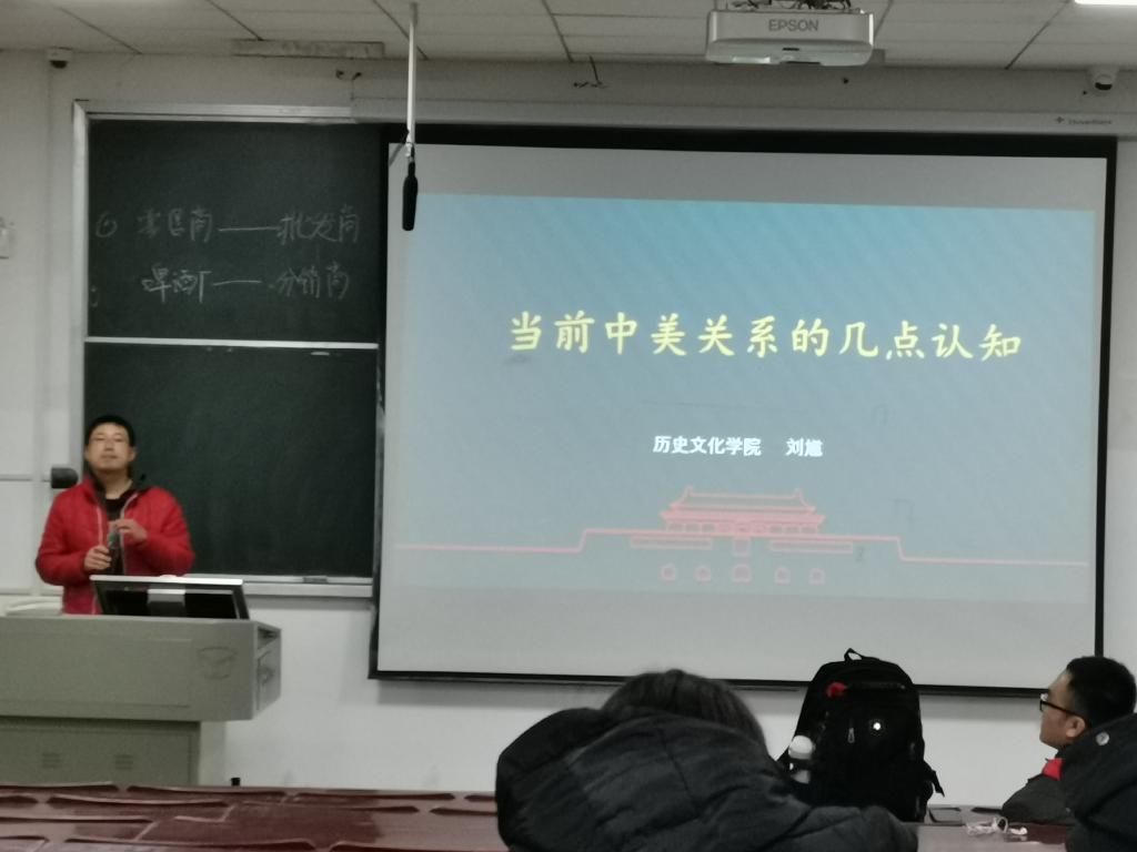 11月25日下午2点,历史文化公司刘馗老师为同学们讲授关于“中美关系认知”相关知识。best365英国体育在线思想政治教育专业17、18、19级全体员工参与听课。