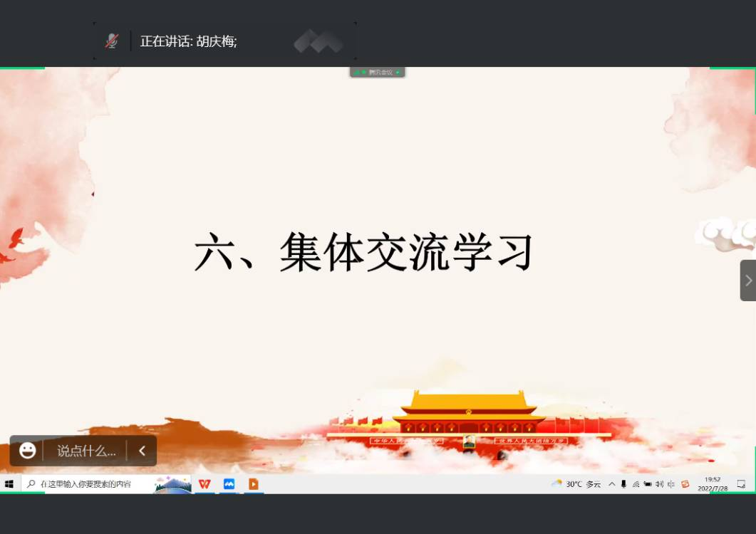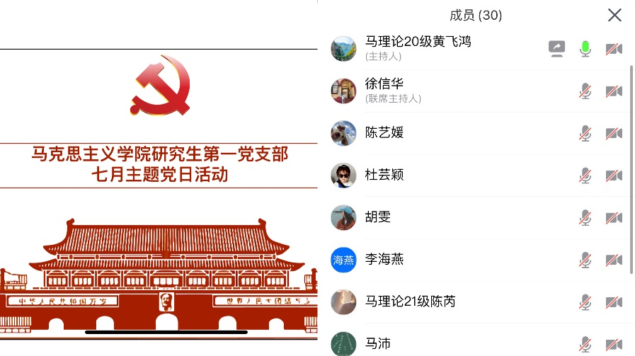 为庆祝中国共产党成立101周年,迎接党的二十大胜利召开,7月28日晚,best365英国体育在线研究生第一党支部以线上形式举行了7月份主题党日活动,开展一系列内涵丰富的理论学习。公司副经理徐信华和研究生第一党支部全体党员参加活动,支部纪检委员黄飞鸿同志主持活动,徐经理作总结讲话。