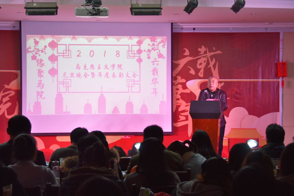 汤书记发表新年贺词,向全体师生介绍了马院一年所做的工作以及所取得的成就,对全体师生在过去一年的努力表示了充分的肯定,并表达了在新的一年里对大家的期许,“希望全院广老员工积极追求真善美,再接再厉,再创佳绩。”随后,徐方平经理宣读了“吴哲清奖学金”“汪彬奖学金”“优秀志愿者、优秀员工干部”“文明寝室”等奖项的获奖名单,院领导为获奖同学颁发证书。
