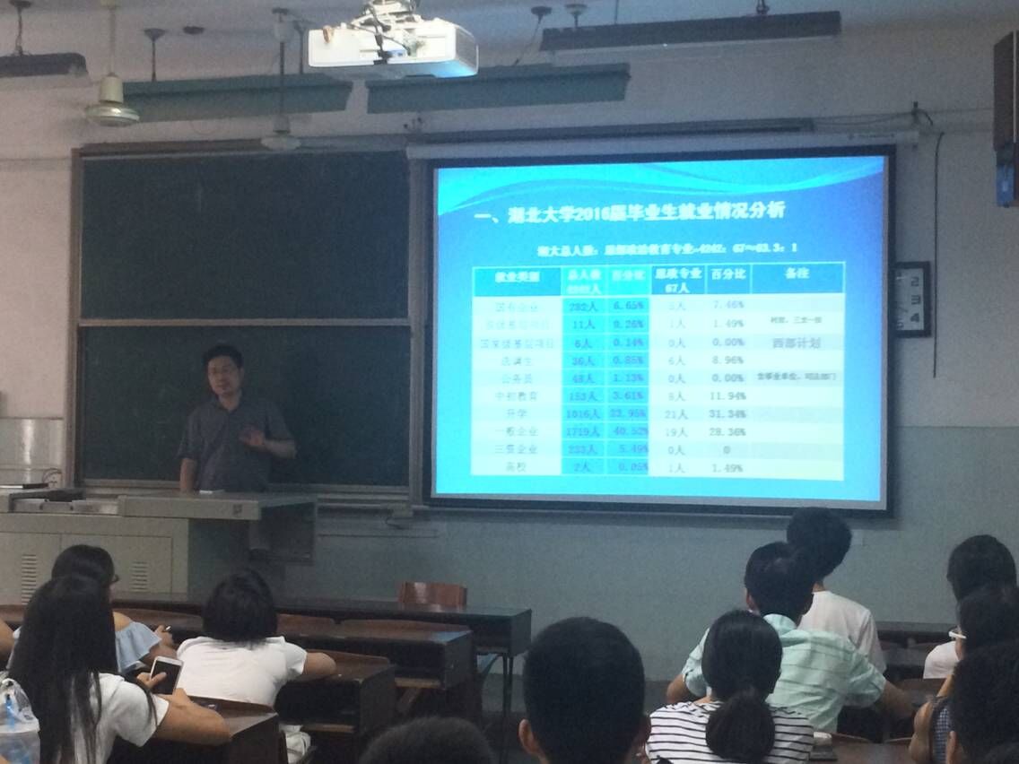 9月4日下午3点,马克思主义公司党委副书记王雄在教二-210教室为公司2017届毕业生做就业创业情况分析与指导专题报告。