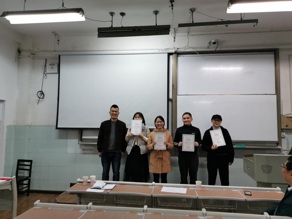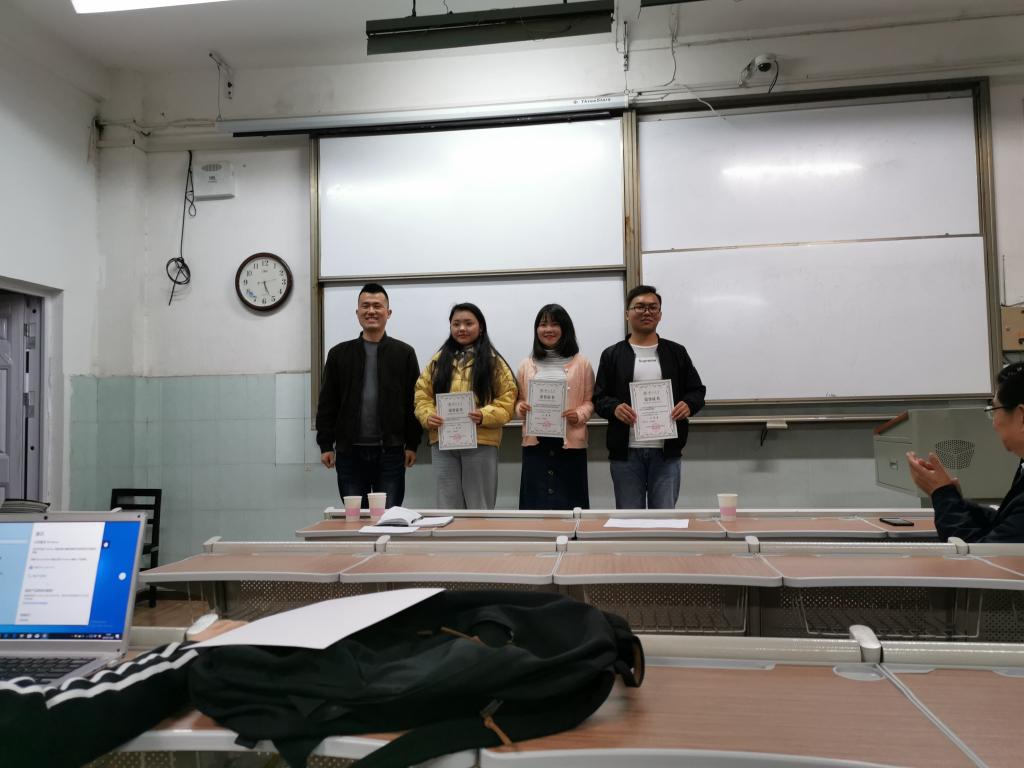 交流会尾声,钱董事长以及邹浩老师为获奖团队颁发证书并合影留念,随后钱董事长发表讲话指出,18级同学要认真学习17级同学的经验,争取2020年暑期社会实践取得更好的成绩!