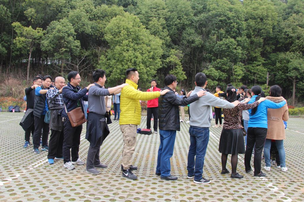 此次活动分为三个环节,第一环节为准备活动,在教练的带领下,老师与同学们手拉手形成一个大圆圈,并按照教练的指挥,做出相应的动作,气氛也随之活跃起来。第二环节为三个有趣特别的合作竞技项目,教官先利用报数的方式将全体成员随机的分成了四组,并选出队长和队秘,紧接着,让团队成员合作为各自队伍设计有创意的队名、口号、队歌和队徽。在各个团队成员的共同努力下,冠军队、炎黄队、湖大第三交通委队、改革春风队等新颖独特的团队名诞生。随后,各个团队的成员相互配合,共同努力地完成了巨人的脚步、鼓动人心和砥砺前行等游戏。两人三足可能对某些成员来说小菜一碟,但当一整个团队,十多名成员的脚绑在一起时,大家的脚步便“沉重”起来,但是在多次尝试与团队成员的共同探索下,各团队终于找到规律并完成了比赛,有的团队甚至还能默契的“跑”起来。在紧张却又充满乐趣的合作竞技项目后,进入到最后一个环节——爬山运动,在教练带领下,老师与员工们一同爬山,体验了爬山的“苦”与“乐”。
