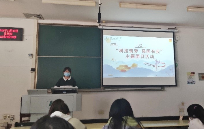 11月18日下午2点,公司思想政治教育2001班团支部于教4-510教室开展了以“科技筑梦,强国有我”为主题的11月份主题团日活动。活动由团支书何影主持,班主任程亚勤老师以及全体同学参与此次活动。