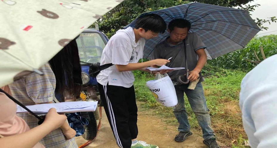 (图为团队成员在采访村民并填写调查问卷/袁金舞摄)