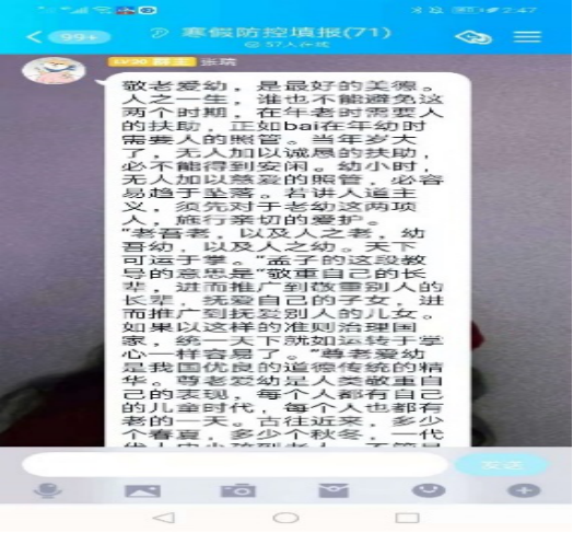 2月8日下午,17级思政班召开了以“传承中华传统文化,感恩敬老爱老”为主题的线上班会活动。