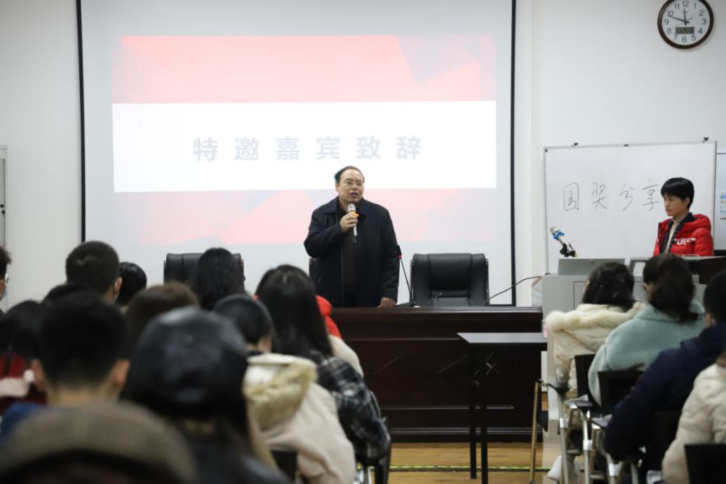 陈焱光老师在致辞中指出,研究生学习既要多研读经典著作,又要注重校际之间、院系之间的跨越交流。此次三院联合举办的国奖分享会,就是一次跨院系、跨学科交流的好机会。陈老师强调,同学们要正确看待国奖,获得国奖不应该成为学习的目的,学会学习、学会做事才是追求国奖过程中最大的收获。他希望同学们以国奖获得者为榜样,学习他们的经验、学习他们精神,将经验与追求融入自己的学习发展,成就属于自己的未来。