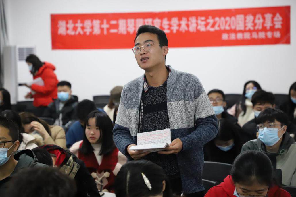 任怡从在规划中坚持、有重点的兼顾全面、有激情的生活三个方面分享了自己研究生学习生活的经验与心得。首先,任怡表示,要明确自己的核心诉求,并根据自身的特质制定目标,并不断的夯实基础,阅读相关报刊及文件,将学习做到常态化,以实现目标诉求。其次,她强调,要将学习科研作为研究生生活的主要任务,同时,也要结合自己的未来规划,将自己的优势转化为核心竞争要素,通过社会实践和参加学术会议等形式走出去,拓宽眼界、提升综合素质。最后,任怡强调,读研不是目的,只是追求未来幸福的手段。要重视交往,在交流反馈中完善;要有面对挫折的勇气,磨练心理承受能力,不能将焦虑极端化。在提问交流环节,任怡就英语学习、文献阅读和时间管理等问题进行了分享交流。