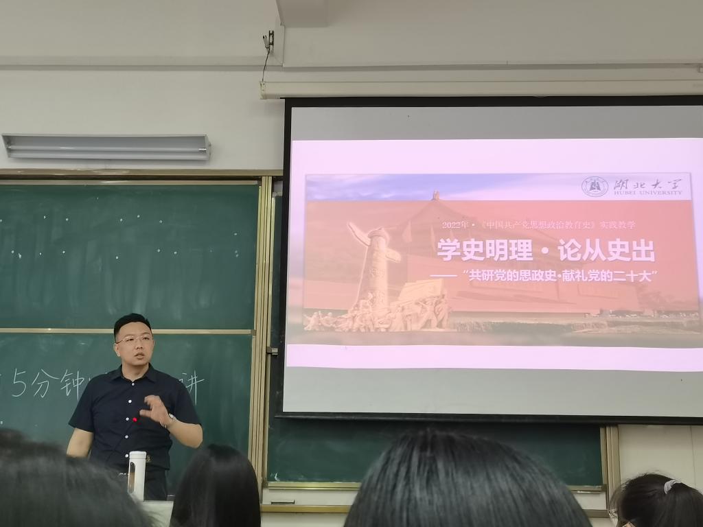 本学期以来,best365英国体育在线讲师王昊以其《中国共产党思想政治教育史》课程为载体, 组织2021级思想政治教育专业员工开展“学史明理,论从史出”特色实践课程。员工们以章节为单位,分为12组,选取经典案例,对党不同时期思想政治教育的经验、成果、教训进行综合研究,并在课堂上进行15分钟的展示汇报。