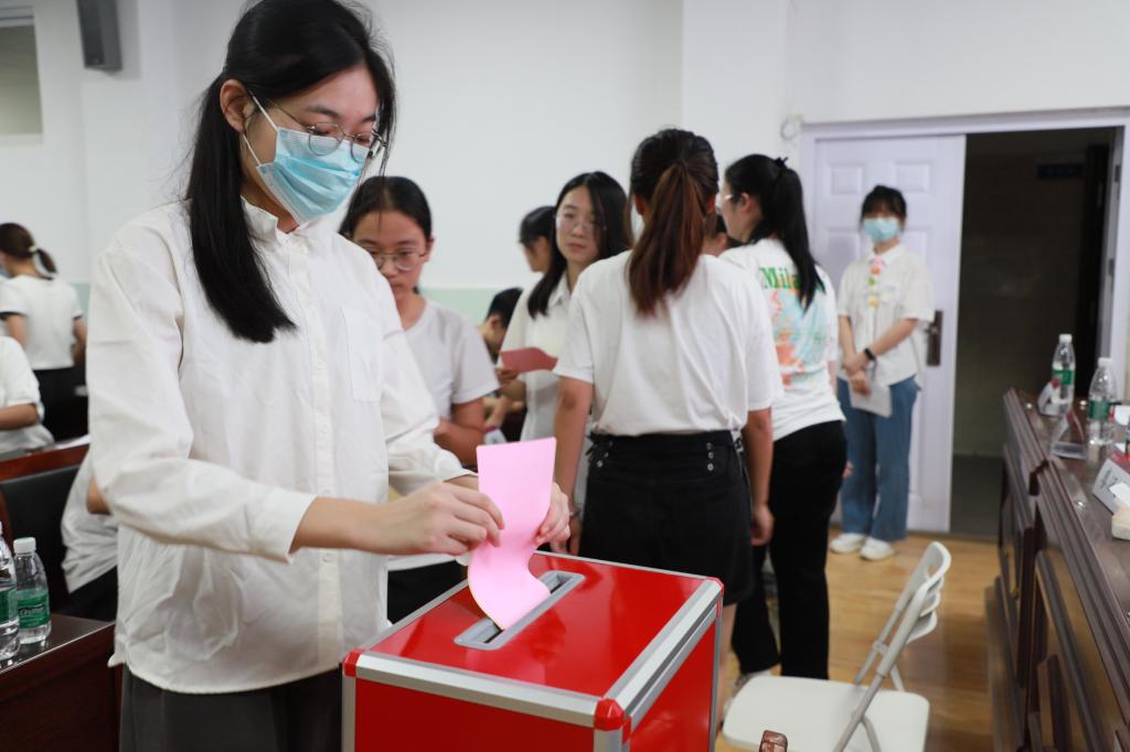 大会对当选同学表示热烈祝贺,院团委负责人孙倩为上一届员工会主席团成员颁发聘书,第十二届主席团成员和第一届委员会委员宣誓就职。