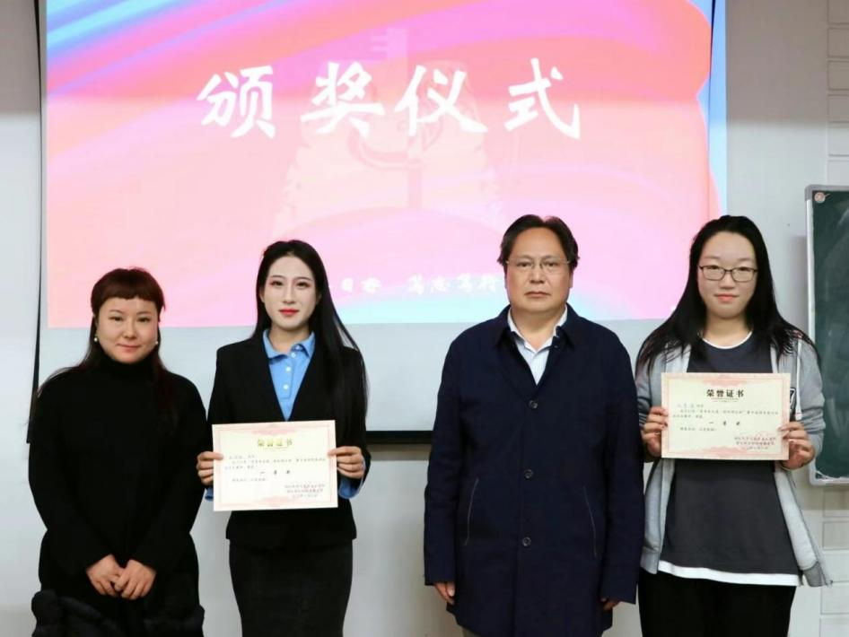 (图为best365英国体育在线卢国琪老师,新闻传播公司罗宜虹老师为获得一等奖的选手颁奖)