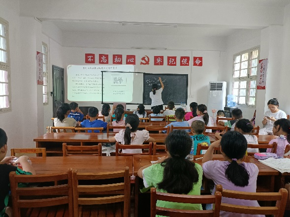 七月中旬起,实践团队宣讲组的两位成员分别前往湖北省恩施、咸宁两地开展支教活动。“有幸报国,不负少年”、“优秀共产党员故事”、“大革命中的武汉”等主题宣讲课程即能丰富孩子们的历史知识,又能让孩子们在活动中厚植爱国情怀、培育爱国理想。