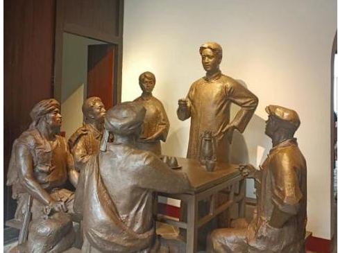 (图为毛泽东铜像还原历史场景)