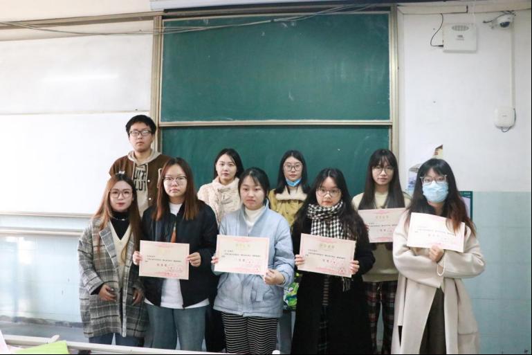 12月6日,四院活动负责人在二号教学楼508向获奖同学颁发荣誉证书和奖品并合影留念。