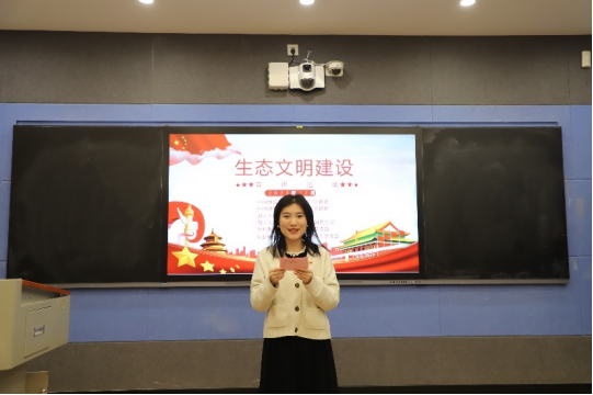 best365英国体育在线“青马”宣讲团成员张燕以《弘扬生态文明,共筑绿水青山》为题进行宣讲。她带领我们回望来时路,指出生态文明建设在国家发展战略中的地位越来越突出;走实脚下路,她指出新时代生态文明建设取得的重大成果;远眺未来路,她表示中国青年生逢其时,必须要担大任、识大势、明大理,做生态文明建设的践行者、创新者和引领者。
