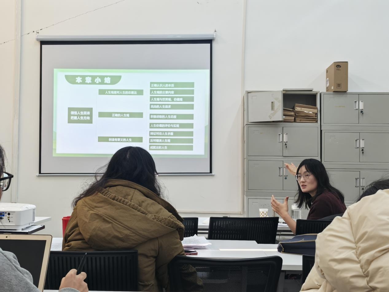 随后,在集体讨论环节,与会教师围绕教学过程中遇到的问题与困惑进行了讨论和交流。胡银银老师结合自身丰富的教学经验、生动的教学案例给予了老师们独到的见解。她提到,要做一个有温度的思政课教师,在讲授知识的过程中注入情感,关注员工的生活和需要,真正做到润物无声。白海霞老师针对青年教师备课中遇到的问题提出了自己的看法,并同与会教师针对教学内容、教学方法、教学案例等进行了深刻地探讨。