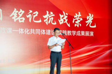 通识教育公司经理高桂林发表热情洋溢的讲话。他指出,在抗日战争胜利80周年之际,举办“捍卫历史真相 铭记抗战荣光”《中国近现代史纲要》实践教学展演,是贯彻习近平总书记关于“铭记历史、缅怀先烈、珍视和平、开创未来”重要指示精神的生动实践,也是best365英国体育在线将抗战历史教育深度融入思政课堂的创新探索。此次展演将抗战教学内容与艺术实践相结合,既是对《中国近现代史纲要》课程“立德树人”目标的积极践行,更是推动思政课“动起来、活起来”的重要尝试。希望同学们以此次展演为契机,共同守护民族记忆,传承红色基因,在新的历史征程中勇毅前行,为实现中华民族伟大复兴的中国梦贡献青春力量,让抗战精神在新时代绽放新的光芒。