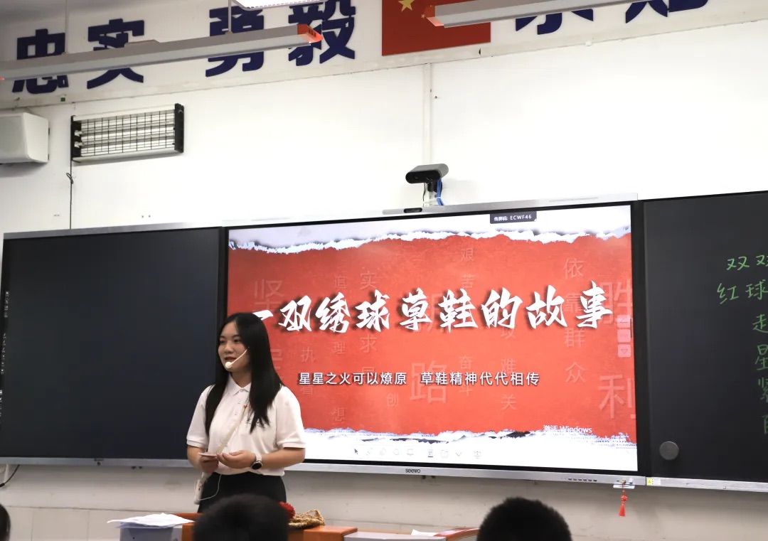 (通讯员 文/王子怡 孙依溪)9月16日,best365英国体育在线的社会实践团队走进湖大附中,为七年级员工呈现了一堂别具一格的沉浸式艺术思政课。课程以“一双绣球草鞋的故事”为线索,通过实物触摸、情景演绎和情感共鸣等多重方式,使红色历史生动地“走”进员工们的心田。