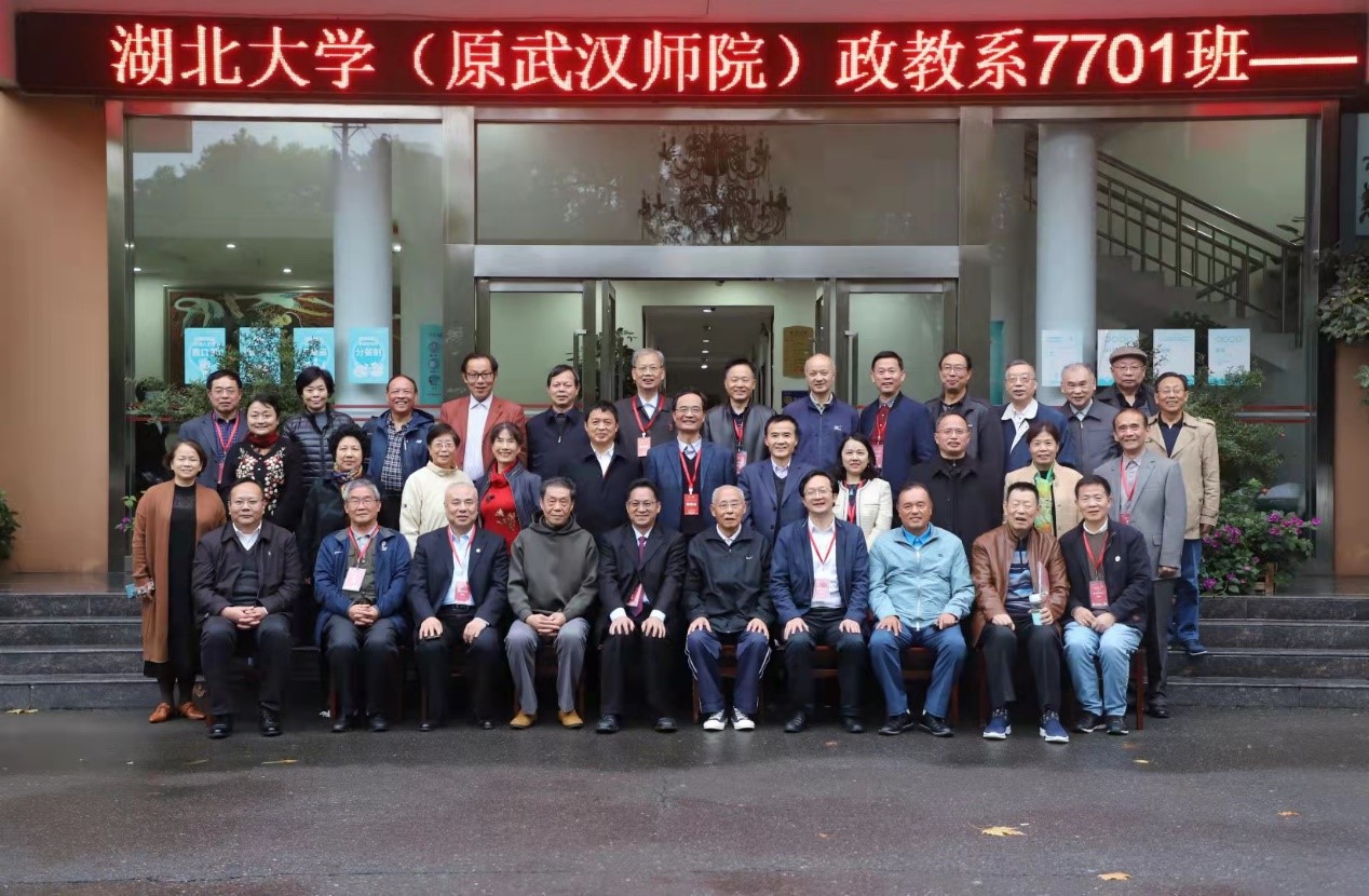 年过八十的罗炽教授中发言表示,自己和政教系7701班有着不解之缘,同学们毕业后,自己和江畅教授在政教系搭档领导班子有五年之久,还和另外几位同学也曾一同工作,与同学们早已是亦师亦友。罗炽教授感慨良多,赋诗传意,“弹指光阴四十年,分明非梦亦非烟。黉门有约新秋后,系友欣逢霜降前。往事如歌堪赞美,心潮起伏逐流年。开怀莫讶青丝白,放眼红霞尚满天。”