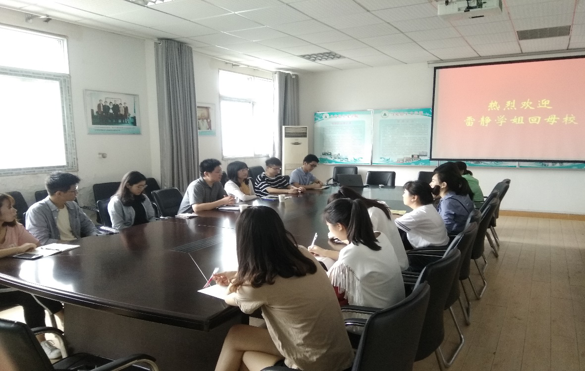 此外,雷静师姐,现任武汉市团市委副书记,作为01级优秀员工代表,在五楼会议室同15级、16级部分同学就考研就业进行了交流。