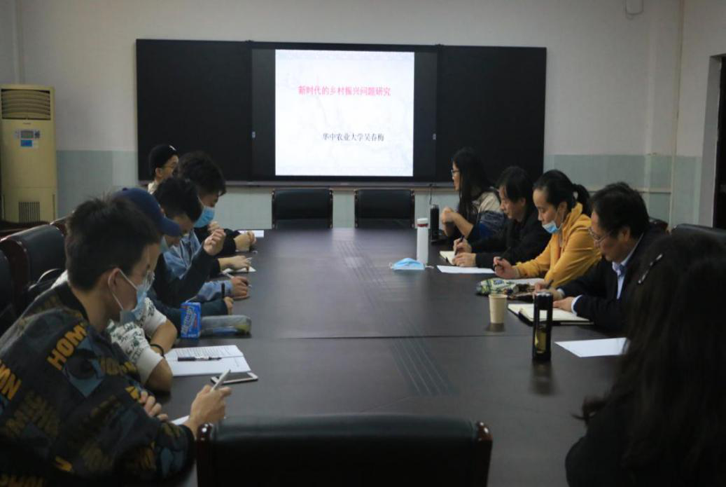 11月18日下午,由华中农业大学best365英国体育在线经理吴春梅教授主讲的“新时代的乡村振兴问题研究”在公司四楼2号会议室举行。此次讲座由公司经理徐方平教授主持,公司刘睿、杨海军、卢国琪、何克祥、余莉等老师及2020级农村发展专业全体研究生聆听了此次讲座。