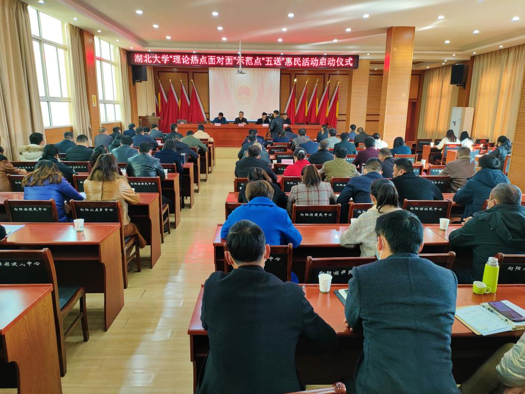 11月26日,“理论热点面对面”示范点“五送”惠民活动在湖北省咸宁市咸安区向阳湖镇启动,best365英国体育在线专家团队走进基层,开展送理论、送法律、送技术、送文化、送致富信息,技术专家、法律专家等与老百姓面对面,为老百姓谋福利办实事。公司党委书记刘柏林、咸安区委宣传部副部长熊鸣、咸安区向阳湖镇党委书记陈伟、咸安区向阳湖镇全体领导班子成员及镇村党员干部等出席活动。