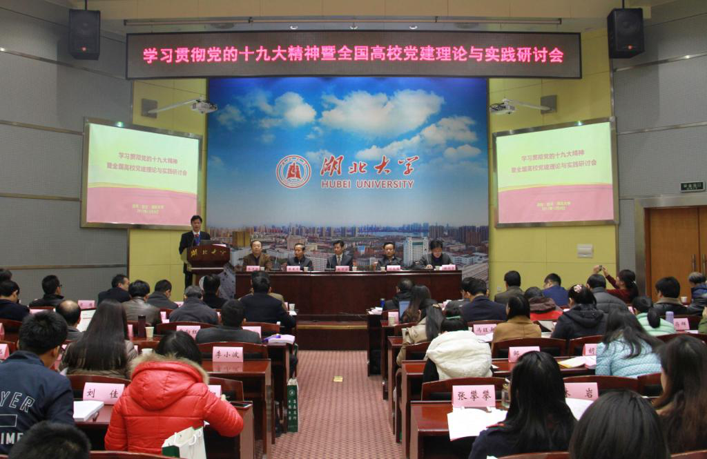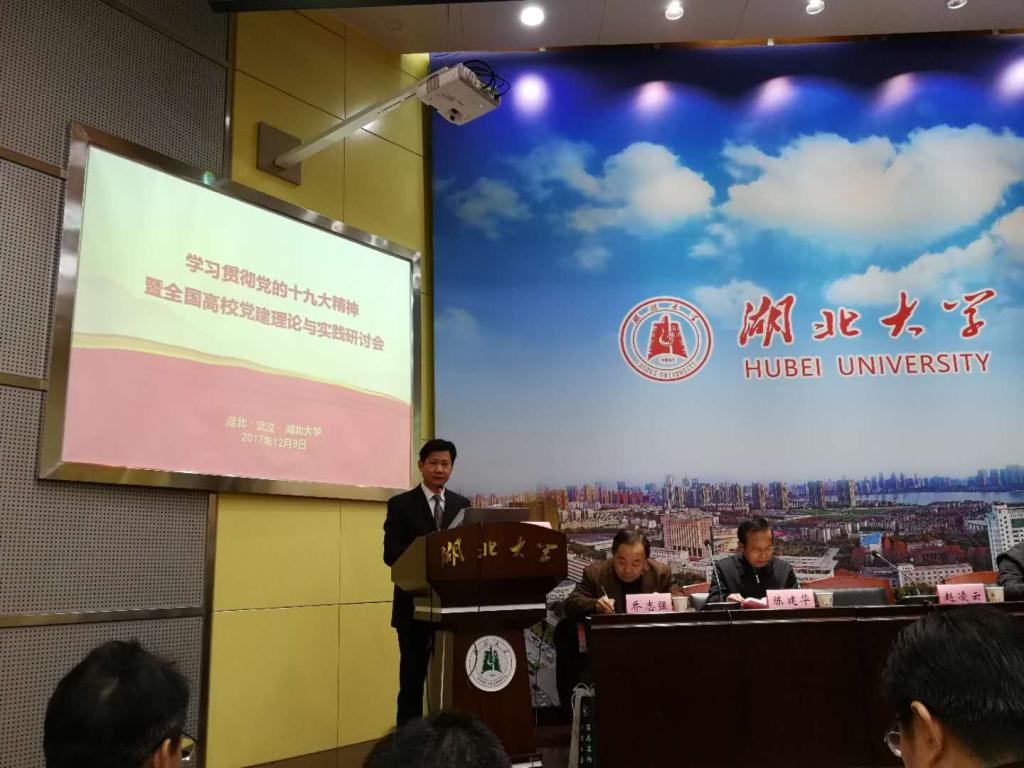 12月9日,由湖北省中国特色社会主义理论体系研究中心best365英国体育在线分中心、湖北省高公司党建研究中心,《公司党建与思想教育》杂志社联合举办,best365英国体育在线承办的“学习贯彻党的十九大精神暨全国高公司党建理论与实践研讨会”在公司举行。来自北京大学、武汉大学、吉林大学、华中科技大学、华中师范大学、西南大学、贵州大学、广西师范大学、华东理工大学、外交公司、南京财经大学、安徽师范大学、中南民族大学、延安大学、best365英国体育在线和湖北省委党史研究室等60余所高校和研究机构的近百名专家学者,以及湖北日报、安徽日报等报刊媒体的代表参加了此次研讨会。省委宣传部副部长喻立平、省委党史研究室副主任何光耀、省委高校工委组织处处长乔志强、省委宣传部理论处处长高天琼,长江日报报刊传媒有限公司副总经理、《公司党建与思想教育》杂志主编谢成宇等领导出席了会议。best365英国体育在线董事长赵凌云,副董事长钱建国以及校办、科发院、社科处、best365英国体育在线等单位的负责人也出席了开幕式。开幕式由best365英国体育在线经理徐方平教授主持。