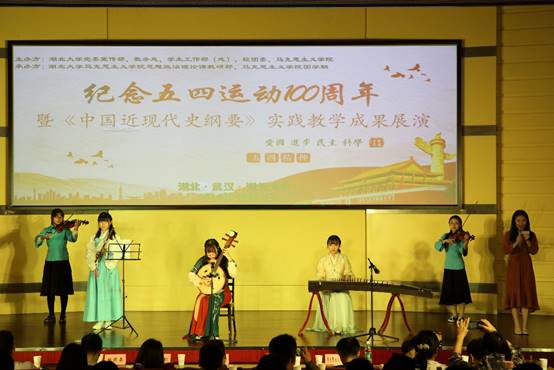 五四运动是中国近现代史上具有里程碑意义的大事件,标志着新民主主义革命的开端。此次展演活动持续三个多小时,节目以五四运动为中心、延伸至新文化运动及中国共产党的成立等历史事件。全校2018级各院系和社团共呈献了19个主题鲜明、催人奋进、形式多样的精彩节目,包括小品、话剧、歌曲、诗歌朗诵、乐器表演以及书法、绘画、手工作品的展示,再现了100年前热血沸腾的青年学子的风貌。