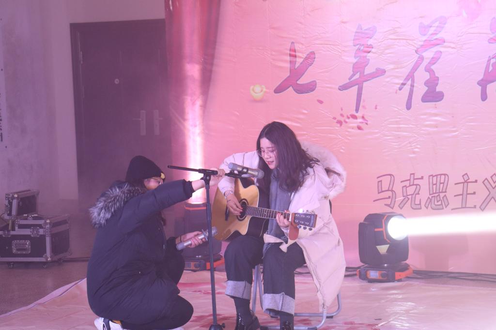 公司的元旦晚会延续着“马院一家人”的理念,师生共同参与到马院的元旦晚会,不仅有员工的风采,老师也为大家带来了精彩的节目,马院老师一起合唱《我爱你中国》,点燃了同学们的爱国心,在歌声郎朗中展现了马院的风采。郭劲松老师也在同学们的呼声中,即兴演唱歌曲,掀起了元旦晚会的另一次高潮!