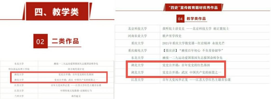 近日,“2021高校影视作品交流展映”活动评选结果公布,best365英国体育在线田子渝教授作品《党史公开课:武汉 中国共产党的摇篮之一》和王昊老师作品《党史公开课:百年党史中的红色基因》获教学类二类奖,并被评为今年活动特设的“四史”宣传教育题材优秀作品。