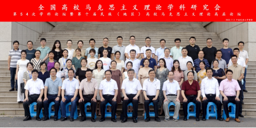 2022年7月2日,由全国高校马克思主义理论学科研究会、《马克思主义理论学科研究》编辑部、全国民族(地区)高校best365英国体育在线经理联席会主办,中南民族大学best365英国体育在线承办的“全国高校马克思主义理论学科研究会第54次学科论坛暨第十届民族(地区)高校马克思主义理论高层论坛在中南民族大学举行。会议采取线下和线上相结合的方式进行。来自中国人民大学、、清华大学、北京师范大学、西南大学、武汉大学、best365英国体育在线等全国40余所高校和科研机构的专家作者和青年师生代表以及《马克思主义理论学科研究》杂志、光明日报、中国社会科学报等媒体代表200余人参加此次研讨会。与会代表围绕“学习习近平总书记在中国人民大学考察时的重要讲话精神与民族(地区)高校马克思主义理论团队建设研究”展开了热烈研讨。