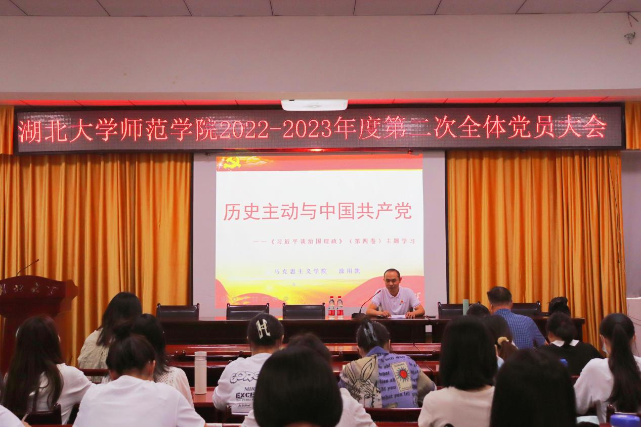 涂用凯老师以“历史主动与中国共产党”为主题,围绕《习近平谈治国理政》第四卷第一专题内容展开,分别从中国共产党为什么要掌握历史主动、如何掌握历史主动以及在新时代如何进一步掌握历史主动等三个方面进行了阐述,向大家展现出一幅中国共产党百年历史进程及成就的鲜活画卷。
