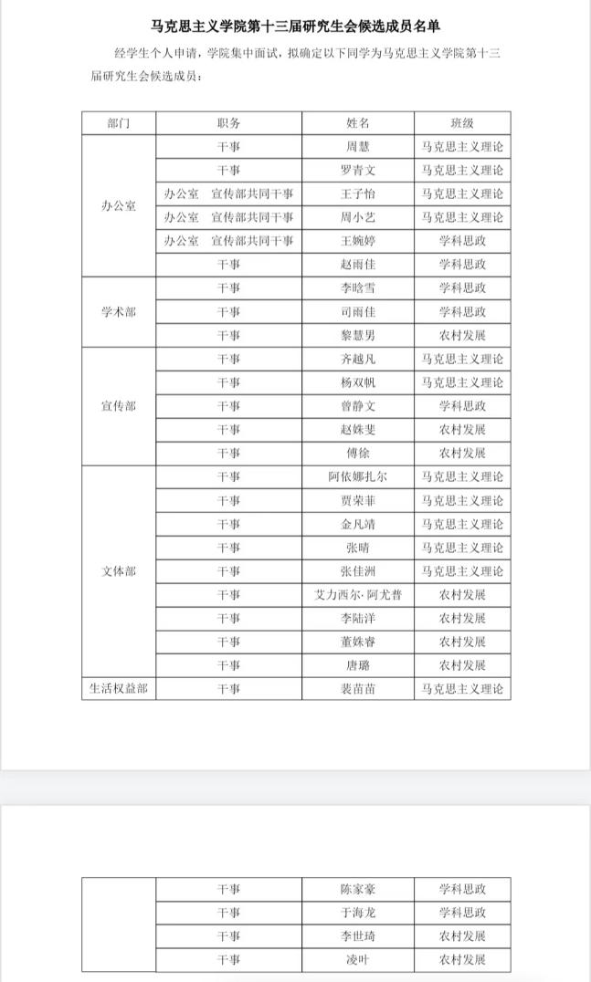 经评审团研究决定,现将best365英国体育在线第十三届研究生会成员名单公示如下:任命2023级马克思主义理论专业杨昕怡、2023级马克思主义理论专业任泉、2023级农村发展专业艾克热木江·艾尔肯三位同学为best365英国体育在线第十三届研究生会主席团成员。