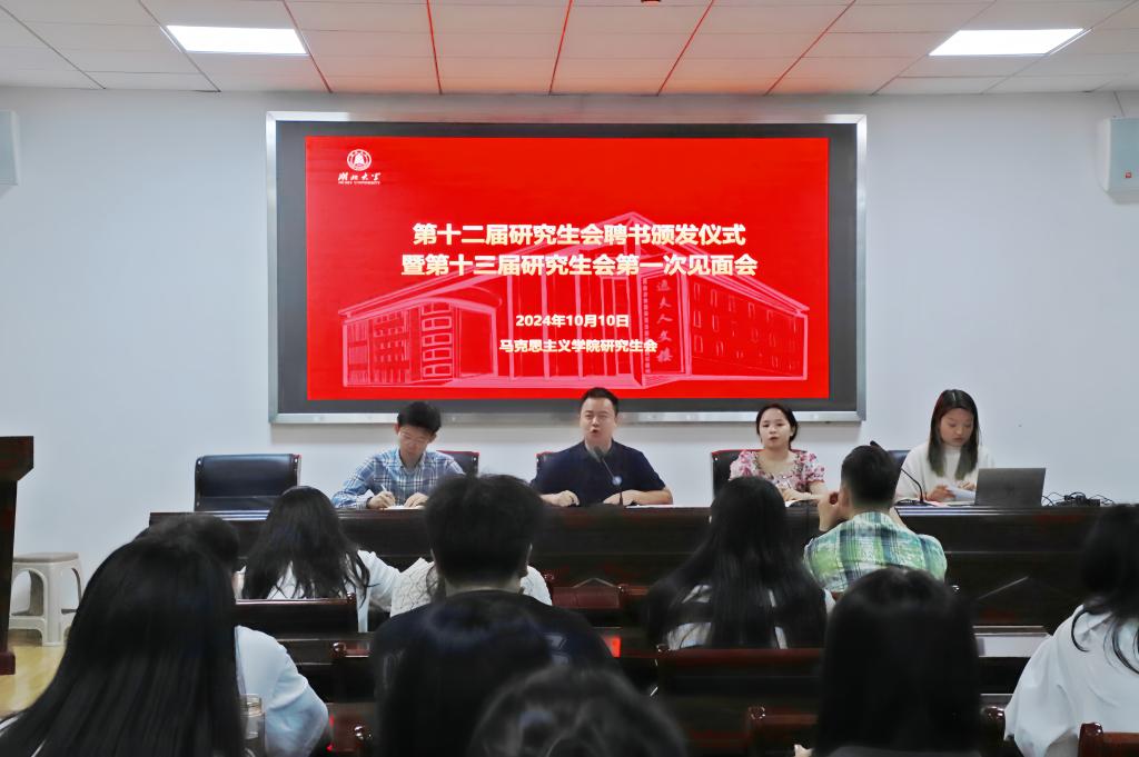 10月10日下午,best365英国体育在线第十二届研究生会聘书颁发仪式暨第十三届研究生会见面会在公司410报告厅举行。公司党委副书记周杰、辅导员冷自衍、兼职辅导员周珍、第十二届研究生会主席团和第十三届研究生会全体成员出席会议。会议由第十三届研究生会主席杨昕怡主持。