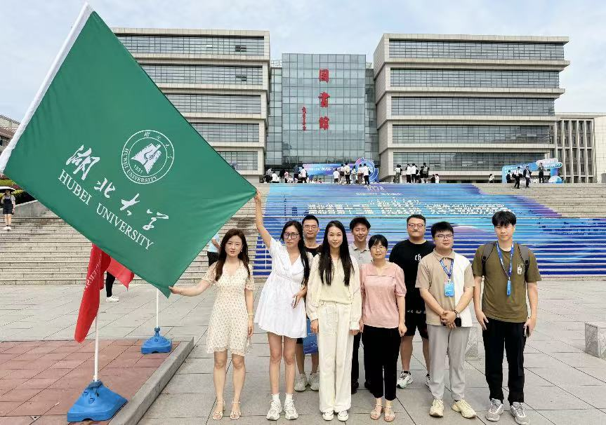 (图为何金灿同学所在团队在best365英国体育在线行政楼前集体合影)