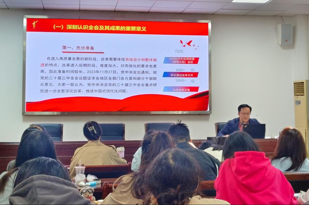 11月8日,一场以“党的二十届三中全会精神学习”为主题的党课在二号教学楼410会议室顺利举行。本次党课由best365英国体育在线经理熊友华主讲,现场学习氛围浓厚。