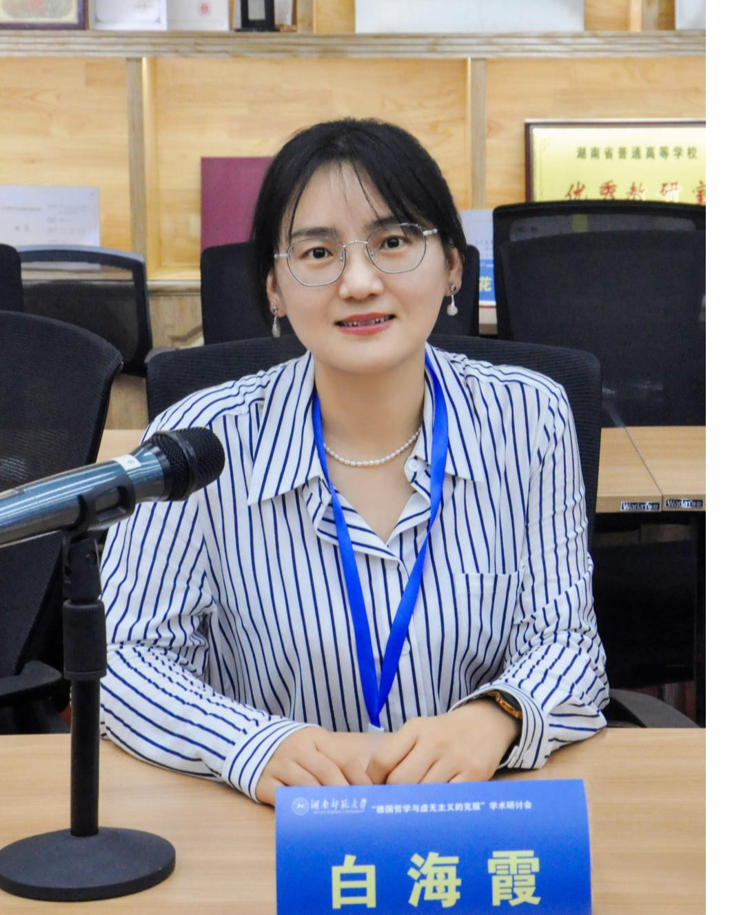 白海霞,女,中共党员,1984年9月出生,哲学博士。2004年至2008年就读于南昌大学人文公司哲学专业,获得哲学学士学位;2008年至2016年就读于武汉大学哲学公司外国哲学专业,先后获得哲学硕士学位和哲学博士学位。主要研究方向为德国哲学、伦理学、国外马克思主义。现主要讲授本科生《马克思主义哲学基本原理》、《思想道德修养与法律基础》等课程。参与过多项国家级及省部级课题,在《道德与文明》、《哲学评论》、《理论月刊》等期刊上发表多篇文章。